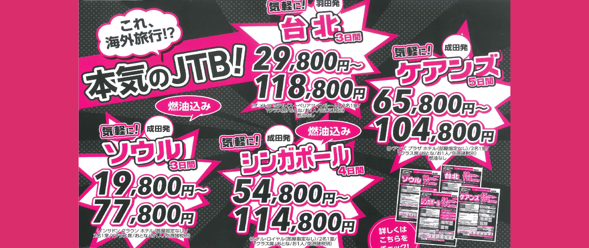 これ、海外旅行!? 「本気のJTB」が、期間限定の特別価格でみなさまの海外旅行を応援します!