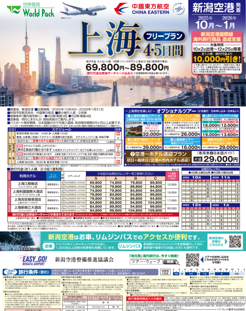 『新潟空港国際線 海外旅行商品 造成支援』にてさらにお得に!